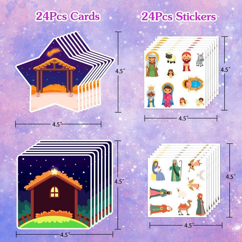 - 【Nativity Scene Stickers for Kids】: Nativity Scene stickers include 12 sheets of background paper card and 12 sheet Jesus Birth stickers. Make your own Nativity Scene according to your preferences.