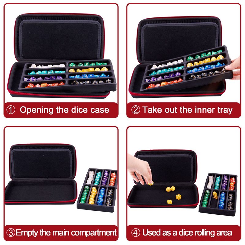 - Storage and Rolling: The pre-slotted EVA tray on the dice storage case can hold up to 8 sets DND dice, detachable design allows the empty main compartment area to be used as a dice rolling tray.