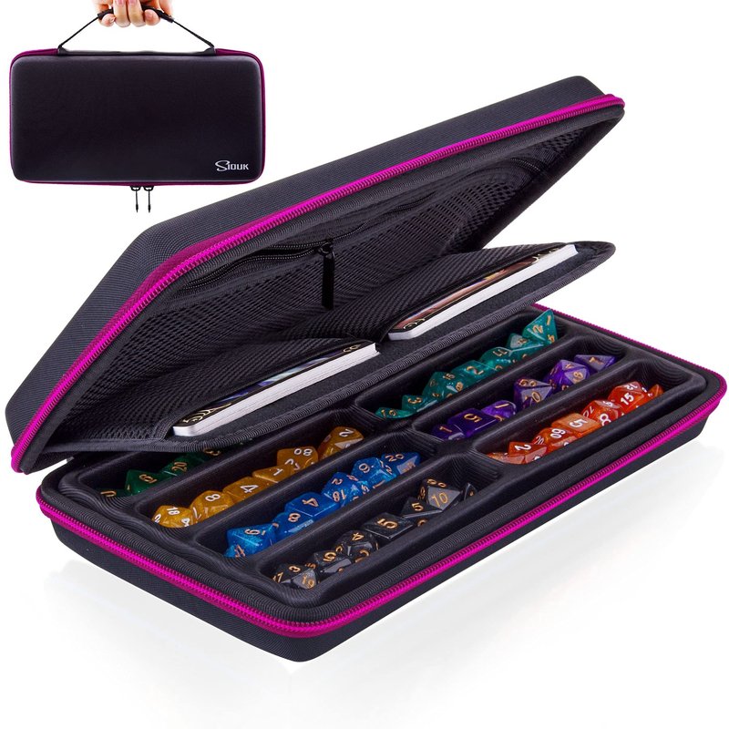 The pre-slotted EVA dice case can hold up to 8 sets DND dice, detachable design allow the empty main compartment area can be used as a dice rolling tray.