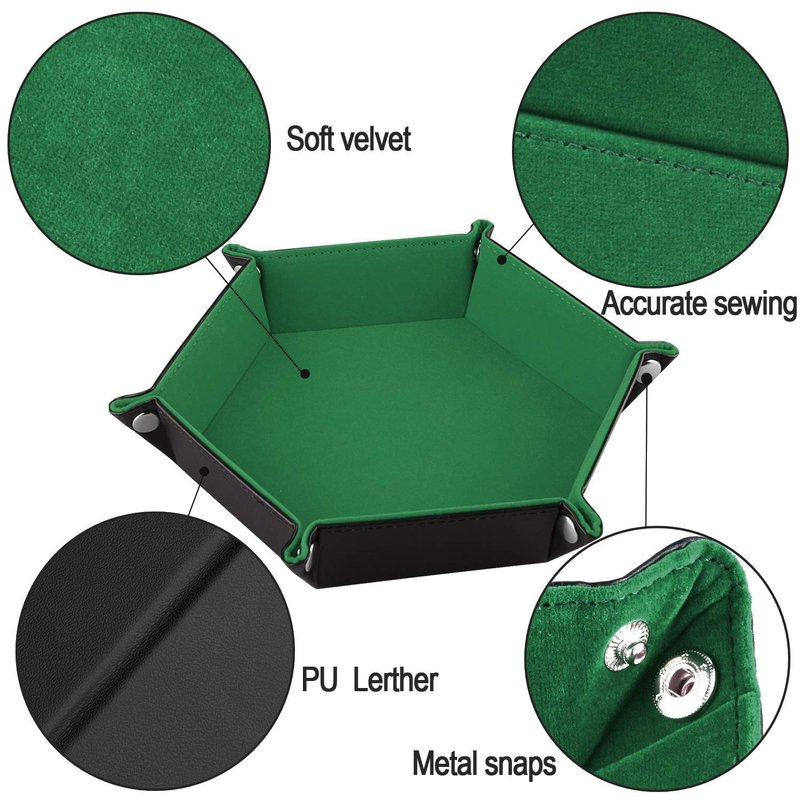 SIQUK Double Sided Dice Tray, Folding Hexagon PU Leather and Dark Green Velvet Dice Holder for Dungeons and Dragons RPG Dice Gaming D&D and Other Table Games