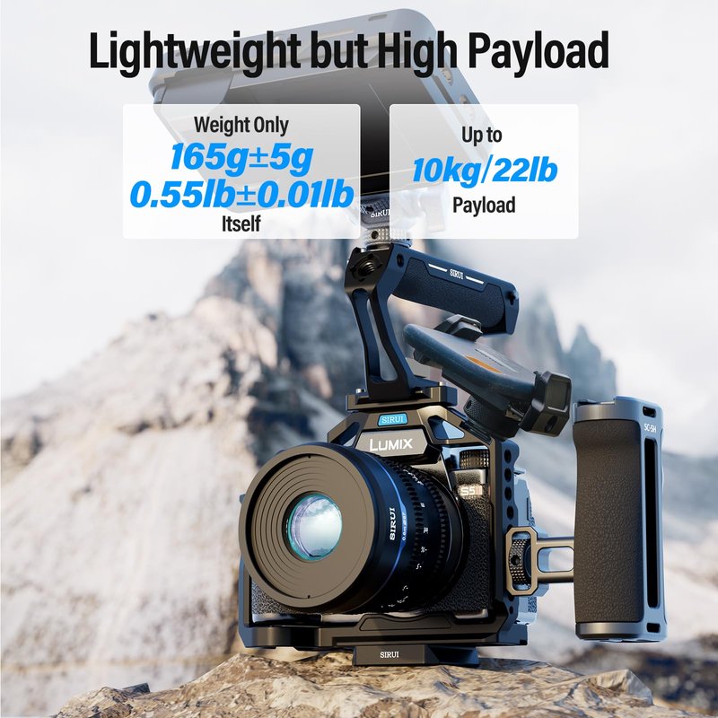 - Premium Materials: The NATO camera cage top handle is crafted from lightweight yet incredibly strong aluminum alloy and features non-slip silicone grips. With its lightweight design, it boasts an impressive load-bearing capacity, capable of supporting up to 22 lbs (10 kg). Its universal usability makes it ideal for low-angle photography.