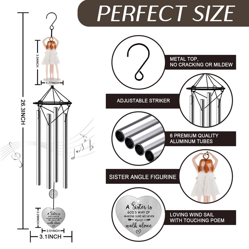- 【Christmas Gifts for Sister】 When you're looking for a gift that shows you care, our Sisters wind chimes along with a gift box and card will truly show how much you miss your sisters. Sisters sculptures represent eternity, which is more meaningful and lasting than flowers. A thoughtful gift, missed from afar, thoughts greet the wind and reach your heart along with the wind chimes.