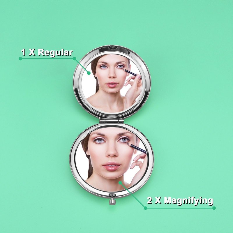 - Portable Compact Makeup Mirror:Mirror Is Shipped With A Protective Film to Protect It. When It Arrives,You Can Tear off The Film, The Font And Pictures Will Be Seen More Clearly. 1 side is a standard mirror to help ensure that your lipstick, eyeliner and hair are in perfect condition and the other side is a magnifying mirror, an exceptionally clear image without distortion. Make sure the girl is getting the perfect look, and also allow her to check the tiniest details of your makeup.