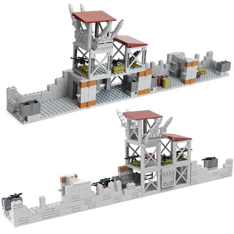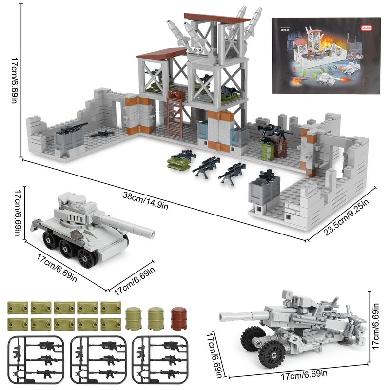 - Rich Accessories & Scenes- This army defence base building set contains a wealth of military accessories, including two different shapes of tanks, some mini guns, sandbags, oil drums. The configuration of guard towers, cannons, etc. also adds more playability to the set. After building, kids can play military games with their friends