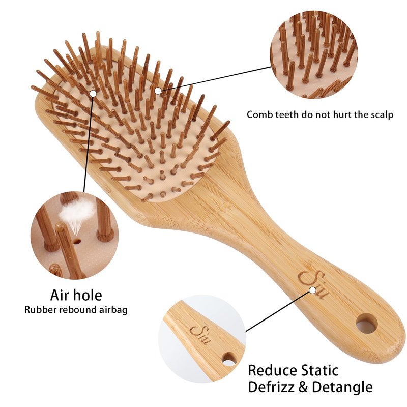 - Easy to Use: The air hole in the middle of the bamboo brush is designed for releasing air when you brush. It is easy to remove dead cells on the scalp and stimulate blood circulation if you comb your hair everyday.