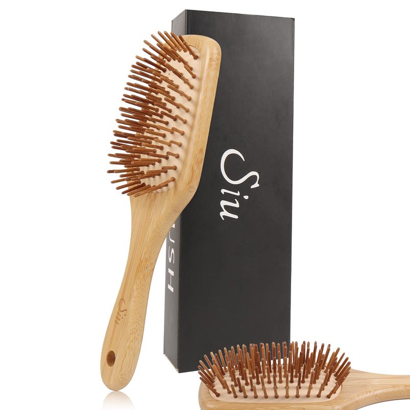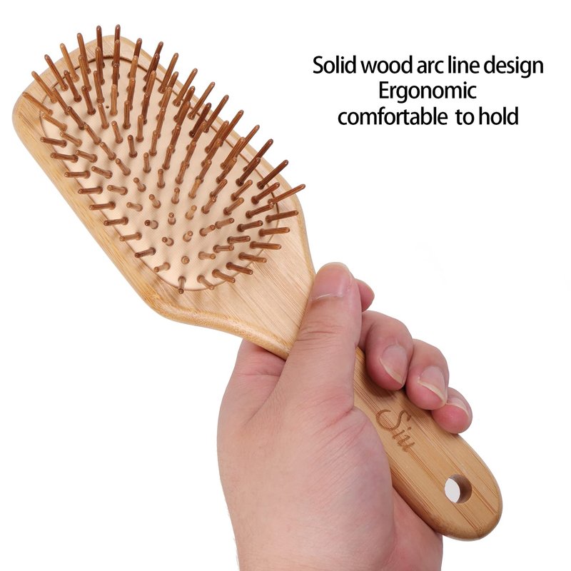 SIU Bamboo Paddle Hair Brush Detangling Hairbrush for Women, Men and Kids, Suitable for All Hair Styles - Small