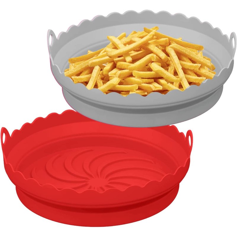- The designed with many silicone liners for improving air circulation and heat distribution to cook your food in less time, and make residual oil or grease easy to flow out to enjoy healthier foods. The support line above the bottom perfectly elevates the food, preventing it from being soaked in the cooking juices and allowing you to cook crispy food.