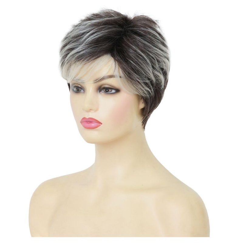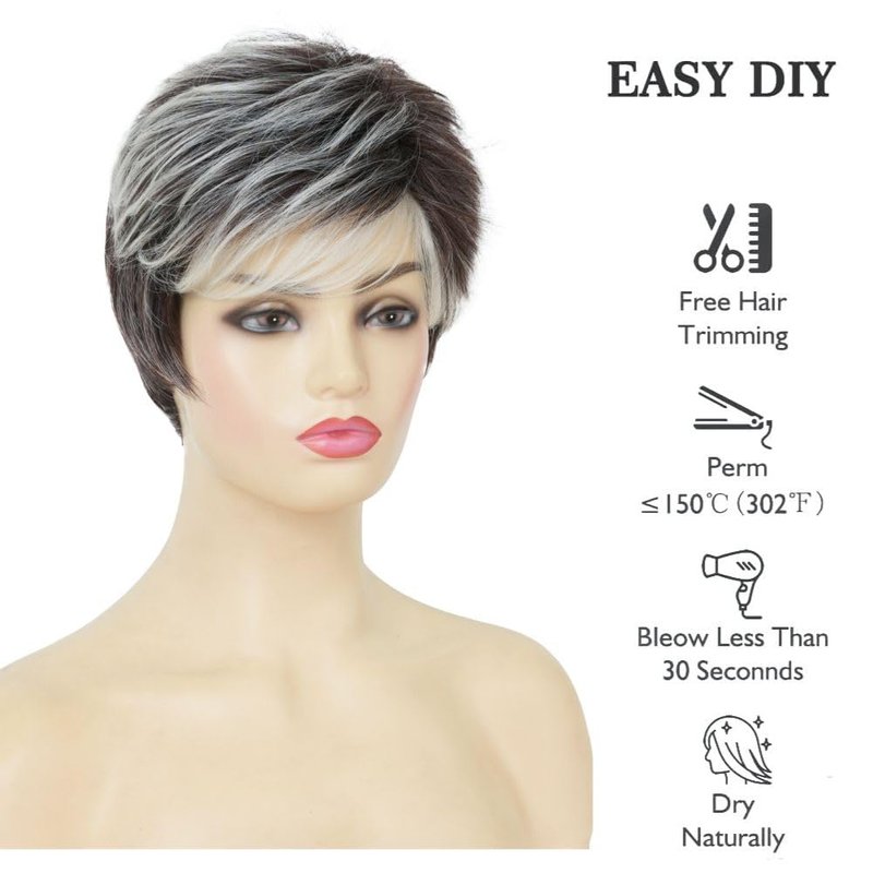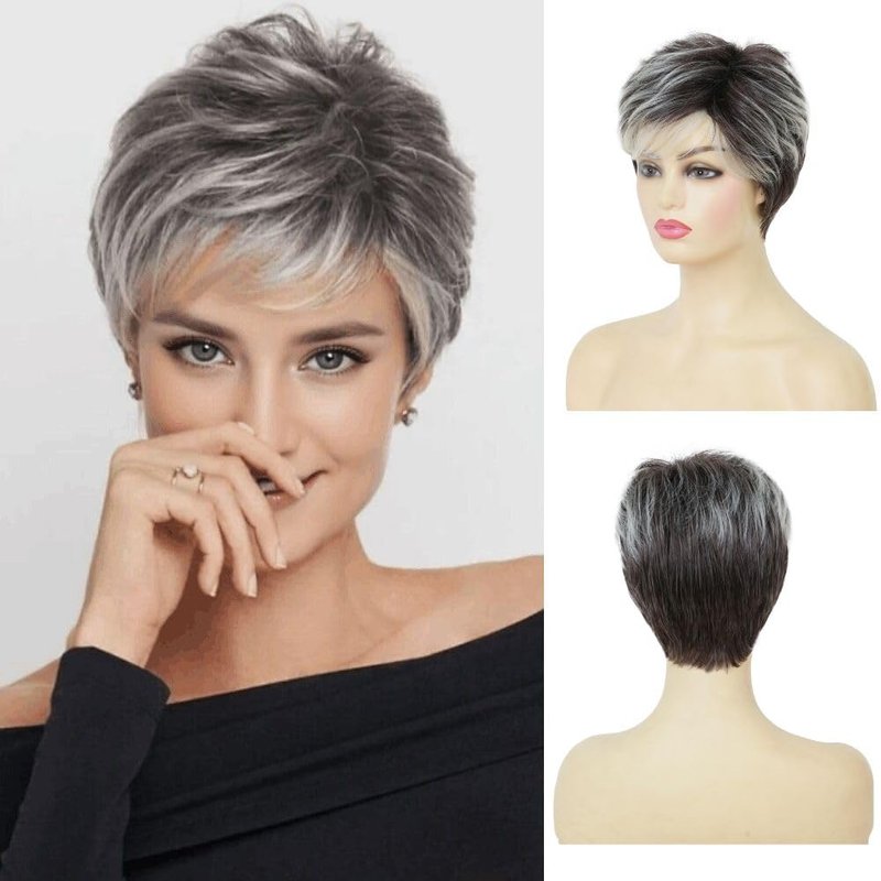 Siudus Short Grey Wig for Women Pixie Cut Wigs Layered Synthetic Hair Wig Daily Costume Wigs(Grey Black)