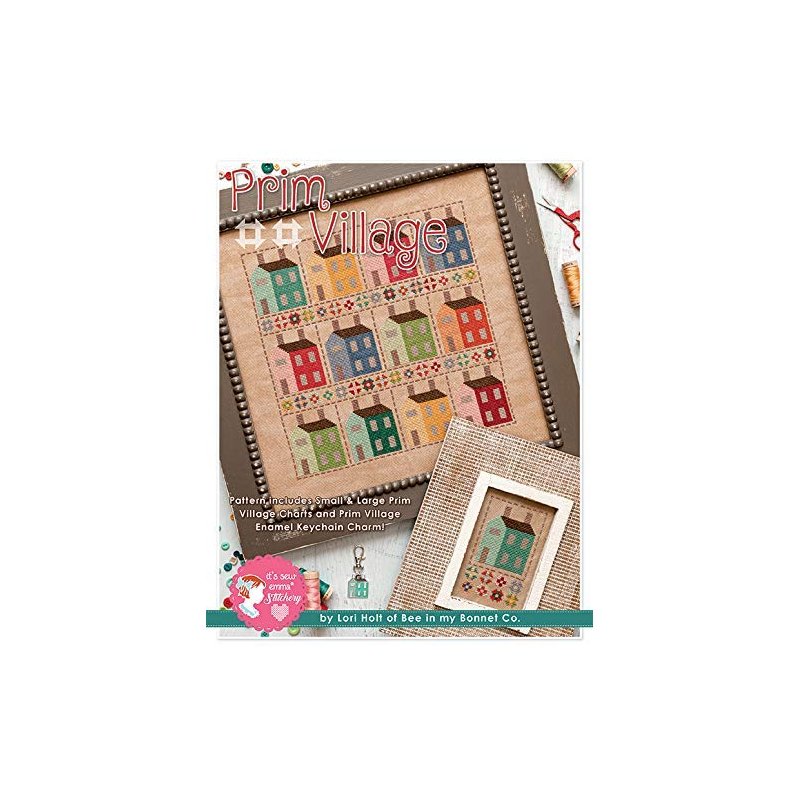 Six Mile Cross Stitch Pattern, Prim Village W/Enamel Charm