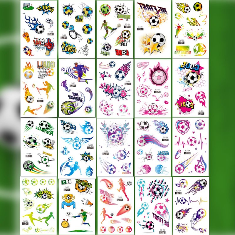 - Kids Tattoos Bulk Temporary for Boys Girls: Large glitter football temporary tattoos set for kids comes with 20 sheets tattoo stickers, each sheet size measures approx. 2.95" x 4.7", assorted size patterns enough for you to decorate your boys and girls or women men body art, diy face tattoos, shoulders tattoos, neck, arms tattoos, eyes design tattoo sparkly decorations