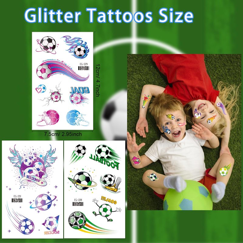 - Multi- Occasions for Party Favors Decorations Supplies: Glitter temporary tattoo stickers set are great for kids decorate for birthday party, gift bag fillers, party favors for kids, kids football games, school sports games activities, piñata popular hit, you can also apply them to some craft objects, glass, stationery, present box, mobile phone shell, bike, etc.