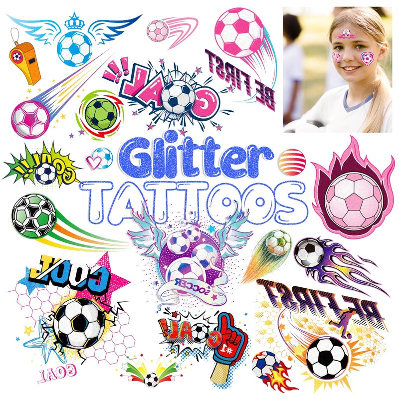 Sixberry Glitter Football Temporary Tattoos for Kids, 20 Sheets Soccers Ball Tattoo Stickers for Boys Girls Birthday Party Favors, School Activity Sports Games Teams Decorations Goodie Bags Stuffers