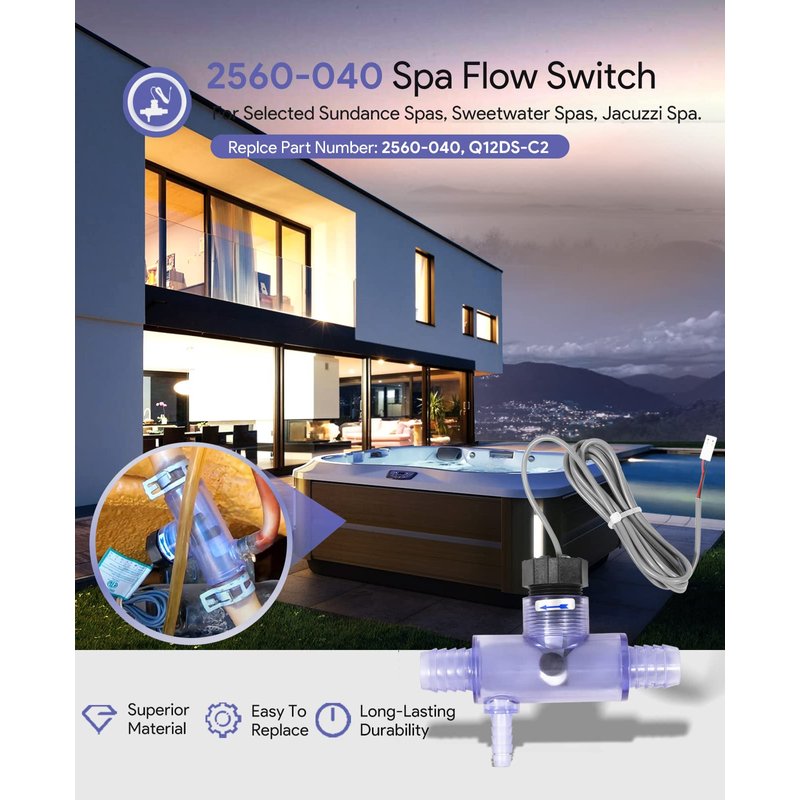 sixcow 2560-040 Flow Switch for Sundance Spas, Jacuzzi Hot Tub and Sweetwater Spas, Q-12DS-C2 Replacement Part
