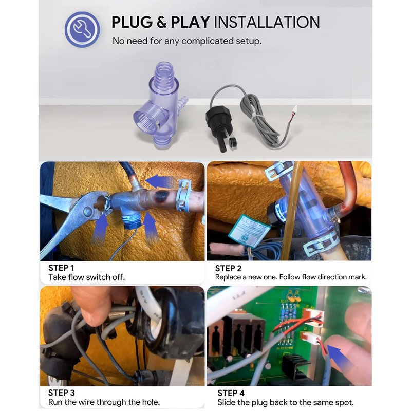 - 【Built to Last】 High impact surgical plastic housing, brass wire with insulationg rubber cable. Good conductivity, fast response, small hysteresis, high precision, corrosion and heat resistance, waterproof, wear resistant. 0.85 inch hose connections and 0.4 inch freeze line connection. Clear plastic for easy viewing of any debris in switch. Directional arrow labels affixed for ease of install. Displays error messages FLO FLO2 and also a flashing FLO message. Easy to use and save your charge.