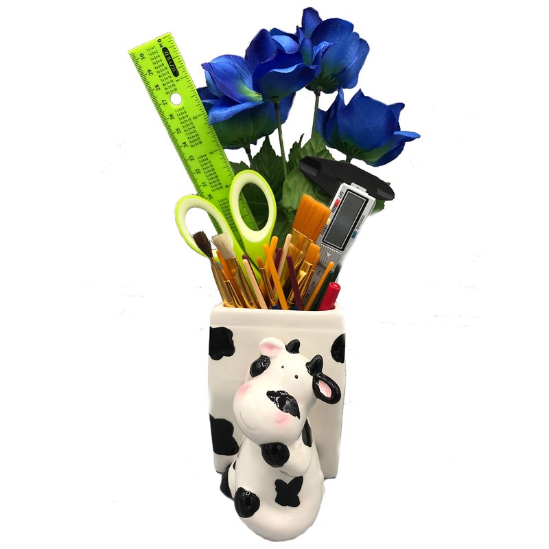Surprise friends with this fun cow decor utensil holder that blends attractive design and functional utility. Farmhouse decor ideas and a practical aid for every kitchen and the perfect spatula holder addition to any countertop or bathroom, white black utensil holder. Great cow teacher gift. Not only perfect for utensil storage or home cow decoration dairy farm decor, but also versatile enough for storage for anything from flowers and plants to paint brushes. The perfect cow gift for yourself or that special person.