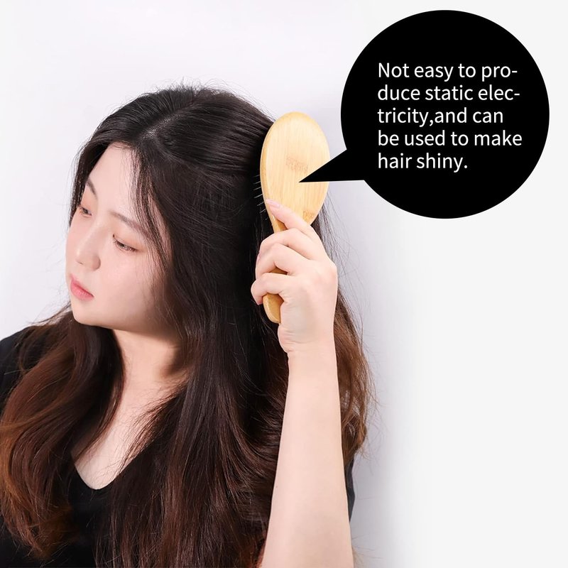 - 【ECO-Friendly】The set comes with 1pcs bamboo brush,1pcs mini brush.These Paddle detangling hairbrushes are made of naturally sustainable bamboo.The ends of the bamboo pins will not damage the hair or scalp and help create sleek and shiny hair. Morever,Also,when your hair gets tangled around a bamboo brush,it's easy to clean with a mini brush.