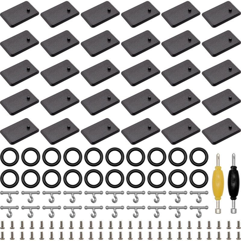 - PACKING INCLUDE:This is a set that includes 30Pcs Black Plastic Display Stand Base, 92PCS Repair Part Set=20Pcs t Hook+20Pcs O-rings+50Pcs Screws+2Pcs Spanner tool (Figure not include)