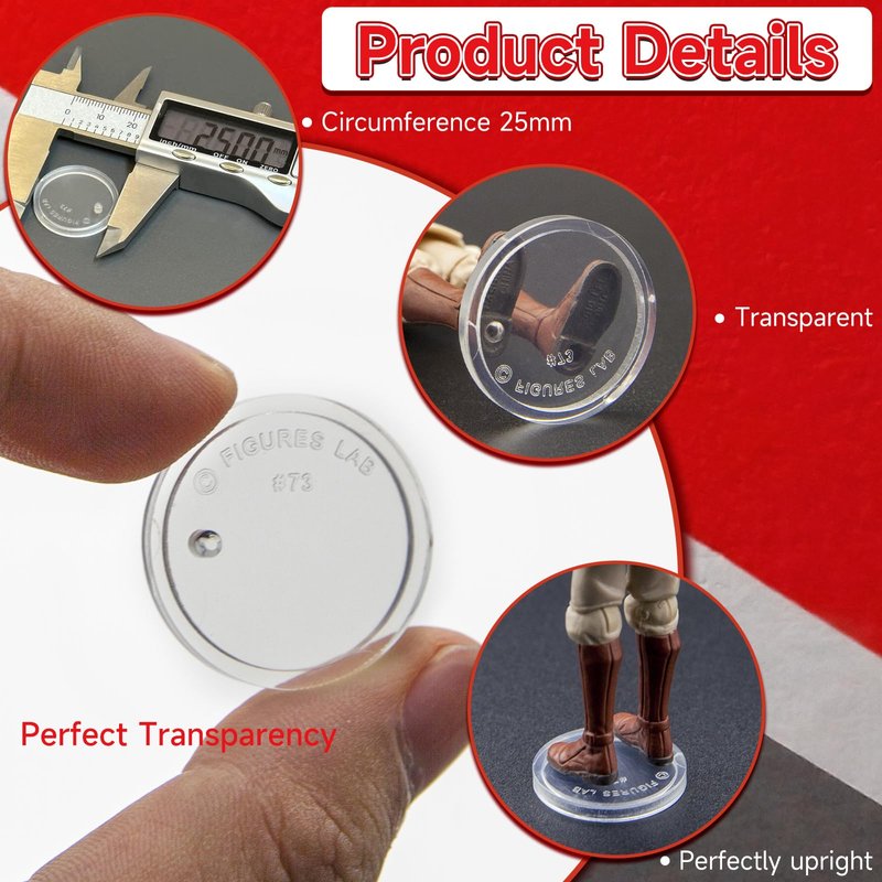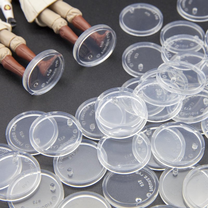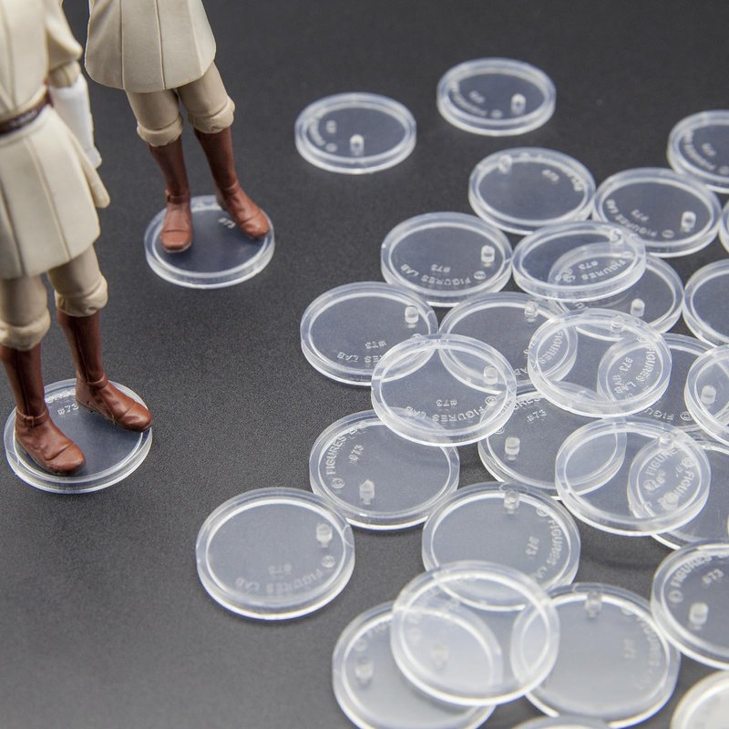 SIXPOINTS 70 Pieces Clear Round Figure Display Stand Base Compatible with 3.75” Movie Action Figure MODERN Star Wars / MODERN G i Joe /Marvel, 25mm Wide Disc,2.35mm Peg Doll Model Support Stand
