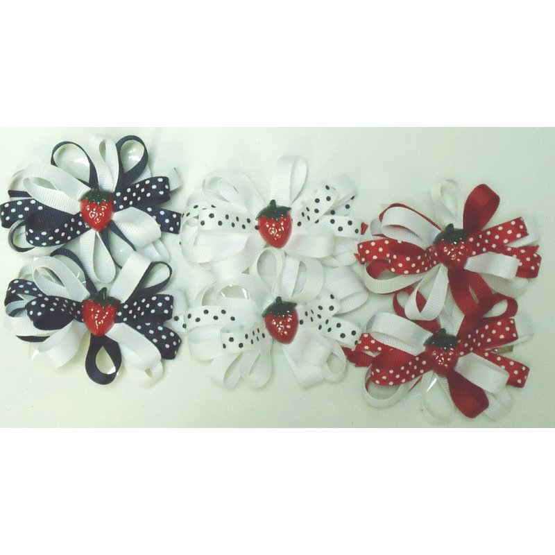 Sj.163, Set of Six Multicolor Polka Dot Ribbon Hair Bow Clip on French Barrette for Teens and Women