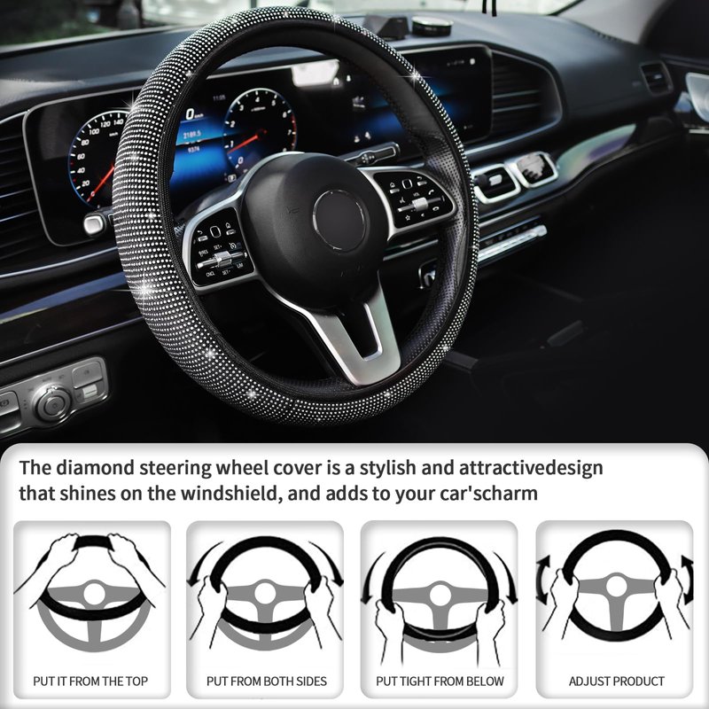 - Easy to Install : Diamond steering wheel cover can be easily installed in just 3 steps. Place the cover on top of the steering wheel, press the upper part of the cover with both hands, and gradually push it down to the sides to tighten it.