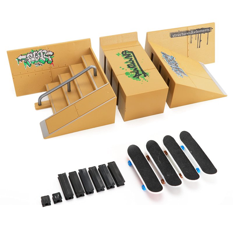 Skate Park Kit,Fingerboard Skate Park Ramp Decks,Finger Skateboard Ramp Parts 3PCS Skate Park Kit with 4 Finger Skateboards Ultimate Parks Training Props(3PCS)