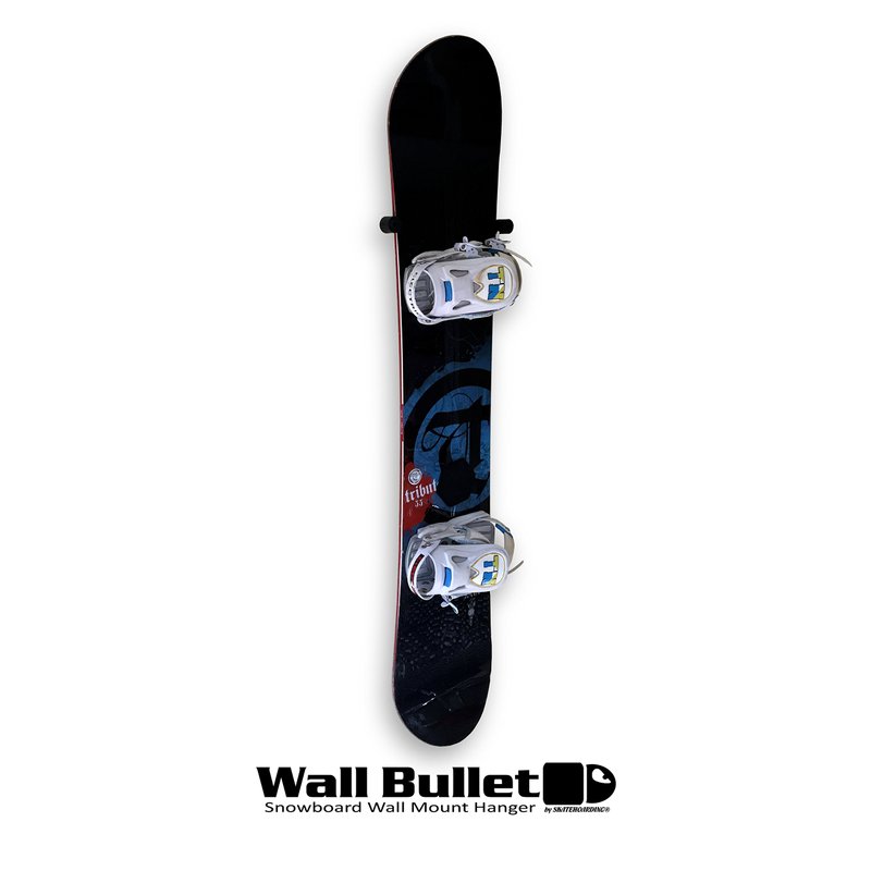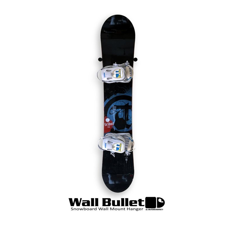 The Wall Bullet is a fast, easy, and affordable way to vertically mount your snowboard on the wall. This mounting solution is a great way to get your snowboard out of the closet, off the ground, and on the wall. The Wall Bullet utilizes the tapered shape of your snowboard and gravity to safely grab your snowboard’s edges. The special rubber density of the Wall Bullet is just right to securely and safely grip your board’s edges. The compact design won’t distract from your snowboard looking good on your wall, yet tall enough to have plenty of grab without board slippage. Of course you can hang your board with or without binding. The Wall Bullet is designed for both Grab & Go storage of your rider and display for your holy grails. All screw and drywall anchor hardware needed for installation is included. Get your Wall Bullet snowboard wall mount today for a lifetime of use. (Snowboard shown in pics are for reference and do not come with product).