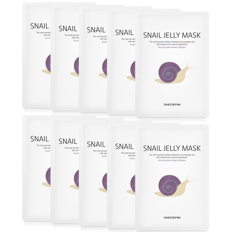 SKEDERM Snail Jelly Face Mask Pack of 10 Sheets Individually Packaged. Hydrogel Coated Facial Sheet Mask with Snail Secretion Filtrate 30,000ppm for Deep Moisturizing