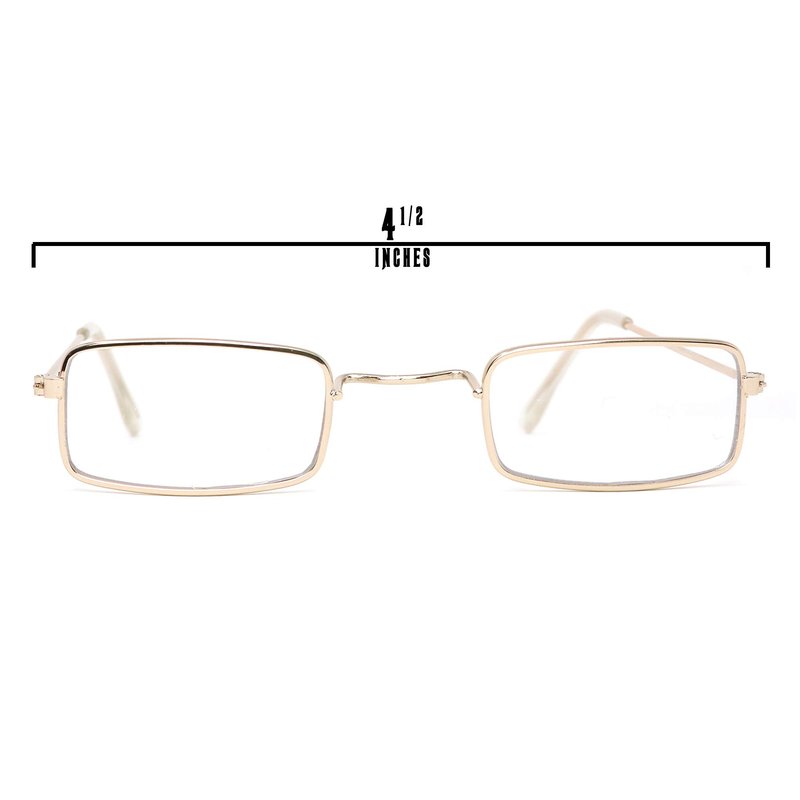 - The glasses are made to fit kids. (narrow faced adults). The width is 4.5" and the handles are 5" long.