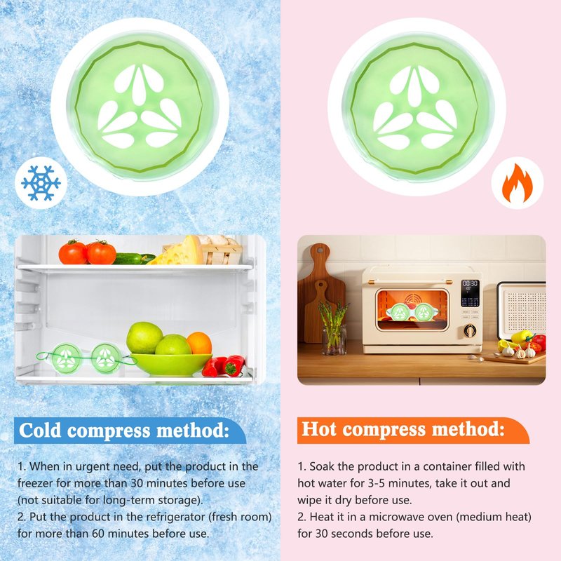 - Hot or Cold Use: our cucumber eye pads are both microwavable and freezable; Designed for versatility, these eye pads are suitable for all seasons and scenarios; You can either warm them up or cool them down based on your requirement