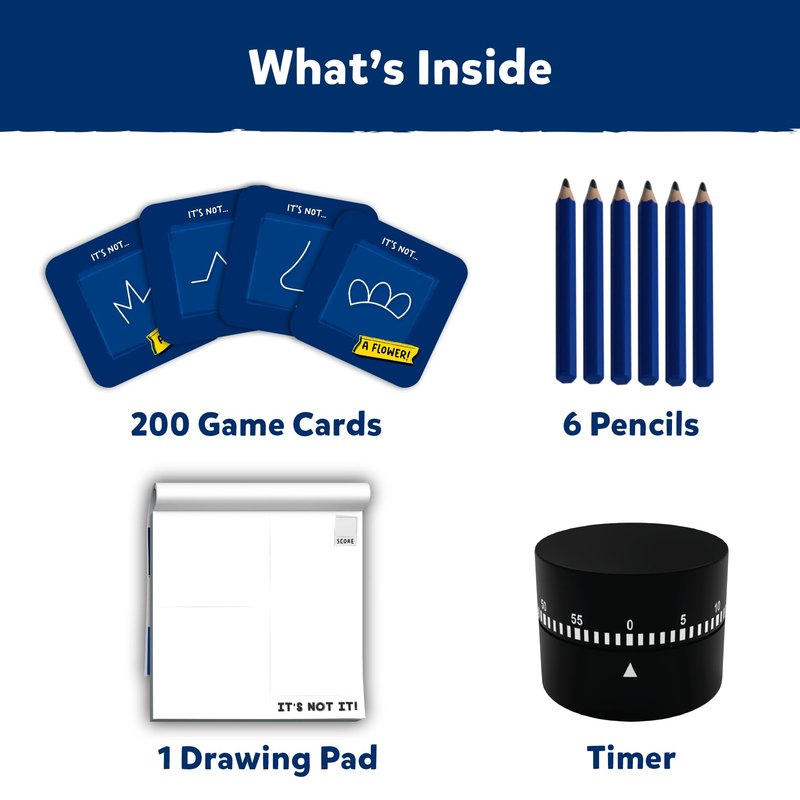 - UNIQUE DRAWINGS WIN POINTS!: It’s Not It challenges your creativity, not artistic skills! To score big, draw something no one else does. But beware—if your drawing matches another, it’s a bust, and no points are earned. Think fast, think different, and outsmart your opponents!