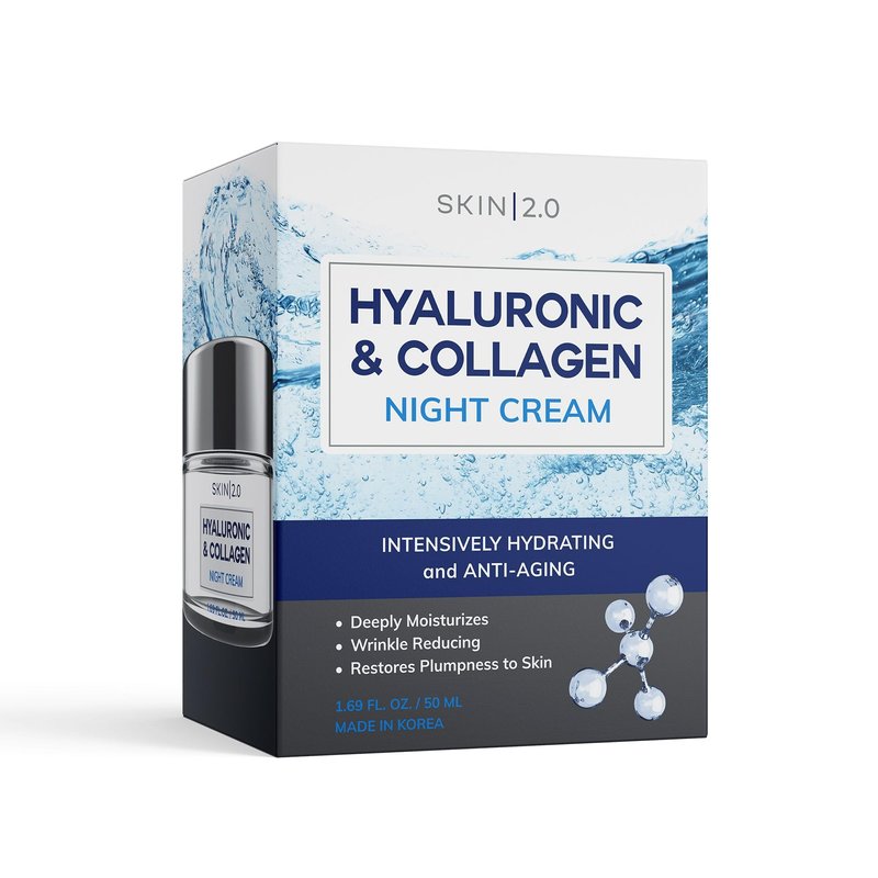 Skin 2.0 Hyaluronic Acid and Collagen Face Moisturizer - Long-lasting Hydration & Moisture, Anti-aging, Skin Firming Night Cream - Cruelty Free Korean Skin Care For All Skin Types - 1.69 Fl. oz