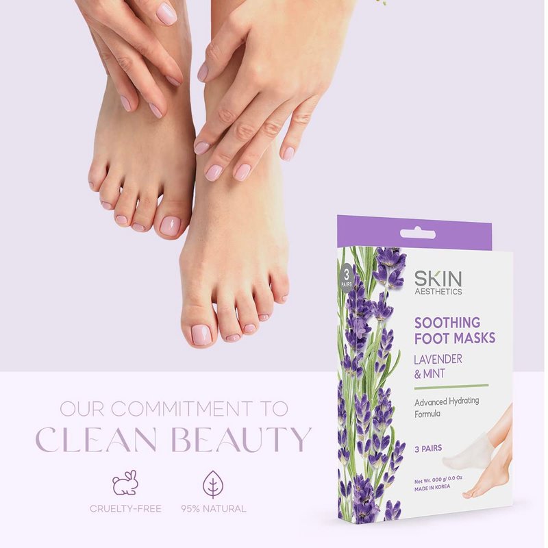 Skin Aesthetics Lavender & Mint Foot Masks Moisturizing Socks - Moisturizes Tired, Dry & Cracked Feet, Exfoliating & Hydrating Foot Mask - Cruelty Free Korean Skin Care For All Skin Types - 3 Pairs