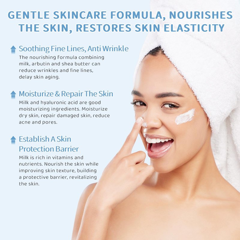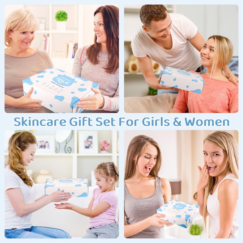 - MILK SKINCARE SET: Milk is rich in protein, vitamin A, vitamin B and other minerals, which are very helpful for skin care. Skin care kit can help girls deeply moisturize and soothe acne, improve skin texture and make the skin more radiant and energetic