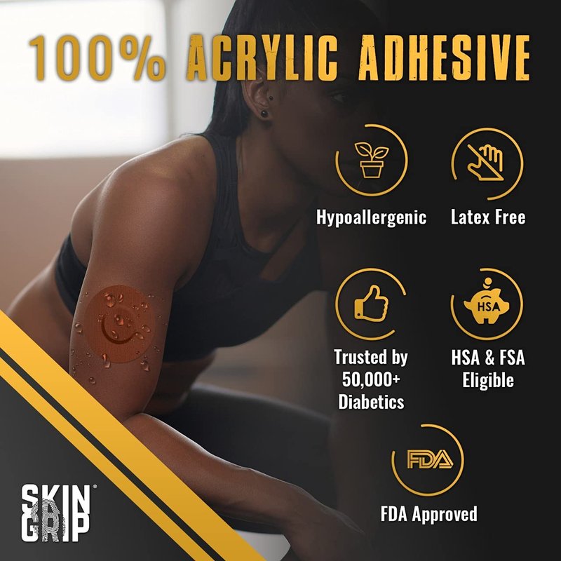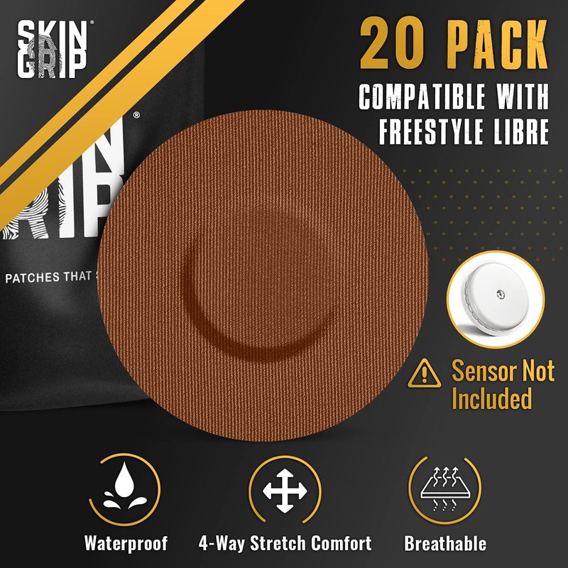 Skin Grip Adhesive Patches for Freestyle Libre 2 – Waterproof & Sweatproof for 10-14 Days, Pre-Cut Adhesive Tape, Continuous Glucose Monitor Sensor Cover – 20 Pack, Chocolate