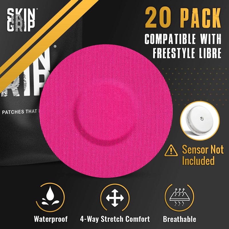 Skin Grip Adhesive Patches for Freestyle Libre 2 – Waterproof & Sweatproof for 10-14 Days, Pre-Cut Adhesive Tape, Continuous Glucose Monitor Sensor Cover – 20 Pack, Rainbow Variety