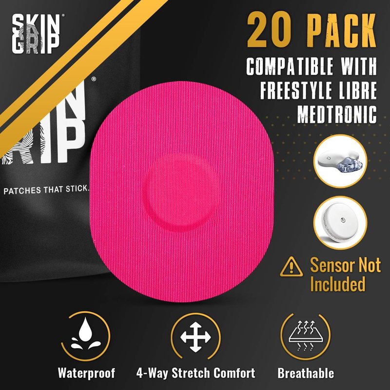 Skin Grip CGM Patches for Medtronic Guardian Sensor (20-Pack), Waterproof & Sweatproof for 10-14 Days, Pre-Cut Adhesive Tape, Continuous Glucose Monitor Protection (Rainbow Pack)