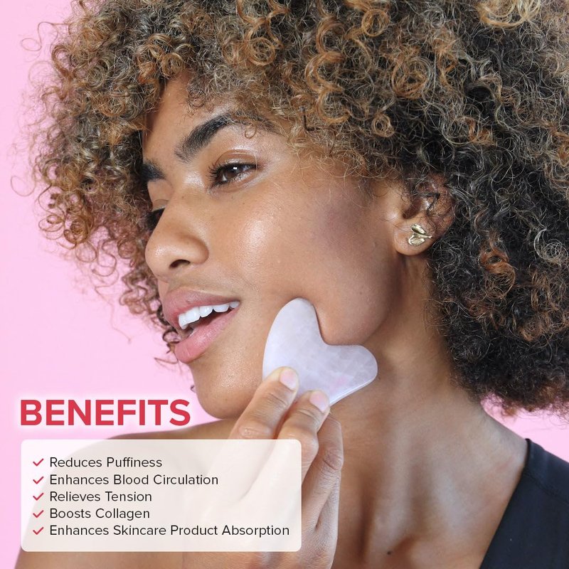 Skin Gym Rose Quartz Sculpty Heart Gua Sha Face Massager for Under Eye Bags, Puffy Eyes and Fine Lines Anti-Aging Face Lift Skin Care Beauty Tool