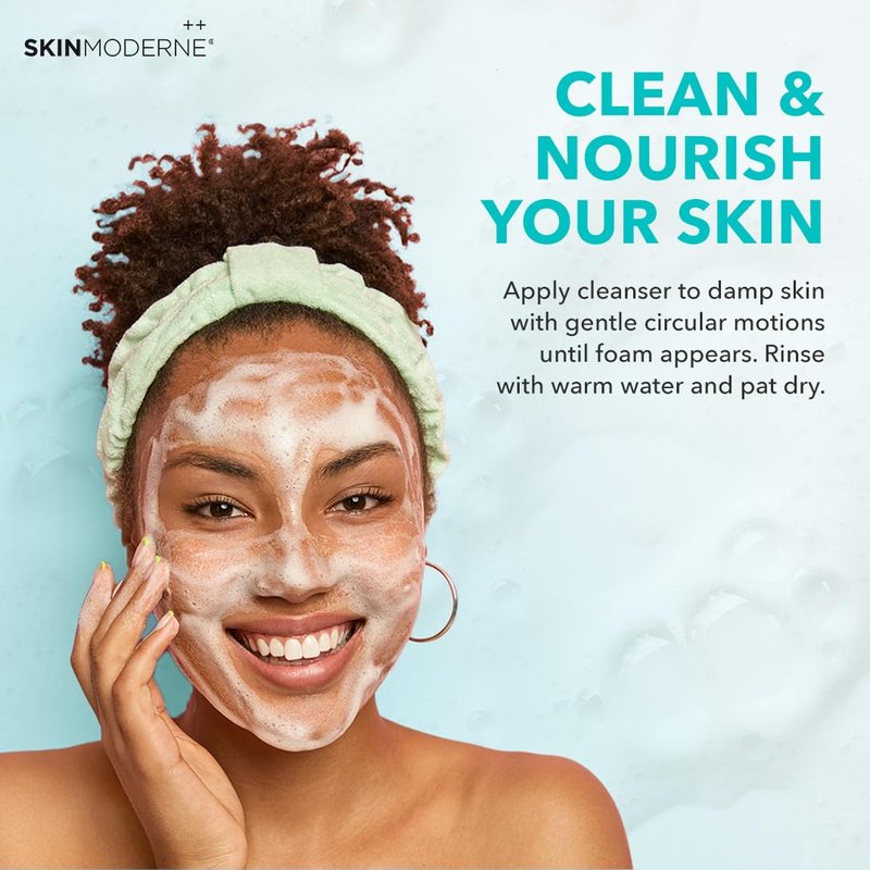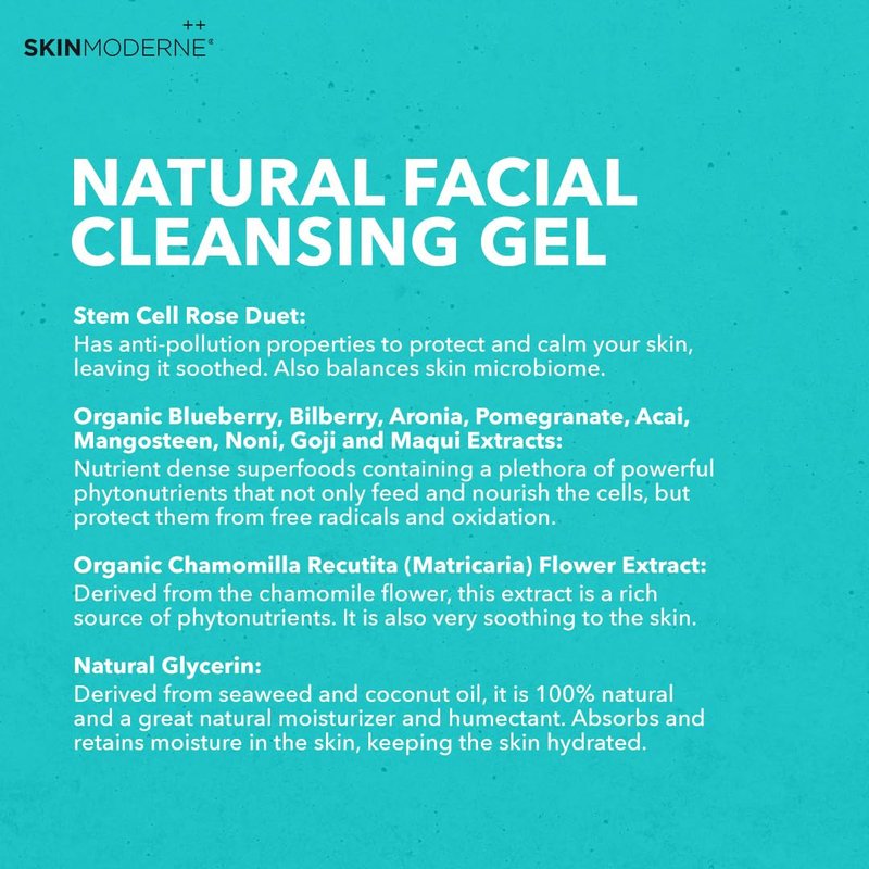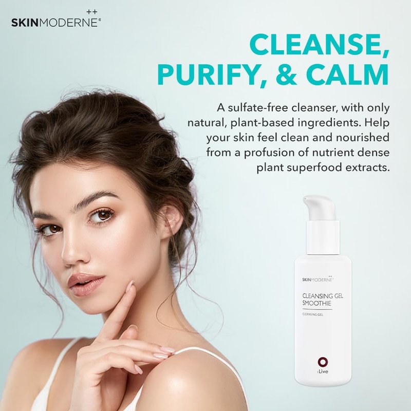 Discover an innovative and natural facial cleansing gel for sensitive and dry skin. Skin Moderne’s Cleansing Gel Smoothie is a sulfate-free cleanser formulated without harshly derived detergents. This natural facial cleanser is gentle and leaves your skin feeling clean and nourished from a profusion of nutrient-dense plant superfood extracts. It is suitable for all skin types. Skin Moderne aligns with ethical and environmental values by supporting sustainable practices and cruelty-free formulations.