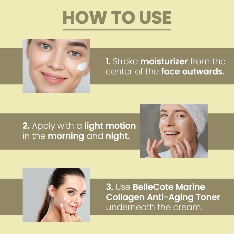 - {饾悜饾悶饾惁饾惃饾惎饾悶饾惉 饾悡饾惃饾惐饾悽饾惂饾惉 & 饾悘饾惃饾惀饾惀饾惍饾惌饾悽饾惃饾惂}: The moisturizer contains powerful antioxidants that help to remove toxins and pollution from the skin and make your skin glow. It is recommended to use Bellecote (marine) collagen anti aging toner underneath the day cream for better results.(Infused with a mega dose of essential Vitamins C, B, and E and skin-boosting stem cells, revives sluggish skin back to its natural, healthy state.