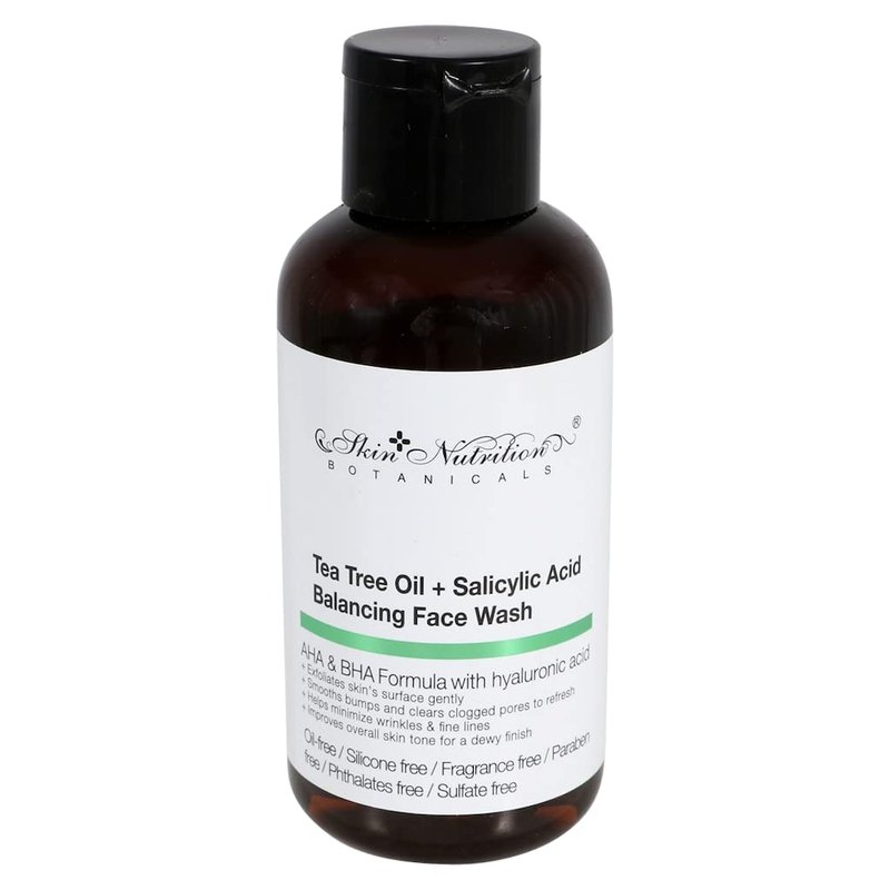 TEA TREE OIL + SALICYLIC ACID BALANCING FACE WASH. AHA & BHA FORMULA WITH HYALURONIC ACID + EXFOLIATES SKIN'S SURFACE GENTLY +SMOOTHS BUMPS AND CLEARS CLOGGED PORES TO REFRESH +HELP MINIMIZE WRINKLES & FINE LINES +IMPROVES OVERALL SKIN TONE FOR A DEWY FINISH