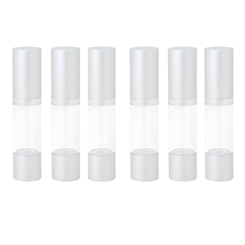 - SLEEK & PROFESSIONAL AESTHETIC - Featuring a matte silver cap, silver base, white pump, and a transparent body, these airless pump bottles for liquids offer a sophisticated look that complements any skincare line. Add your custom labels for a polished, professional presentation.