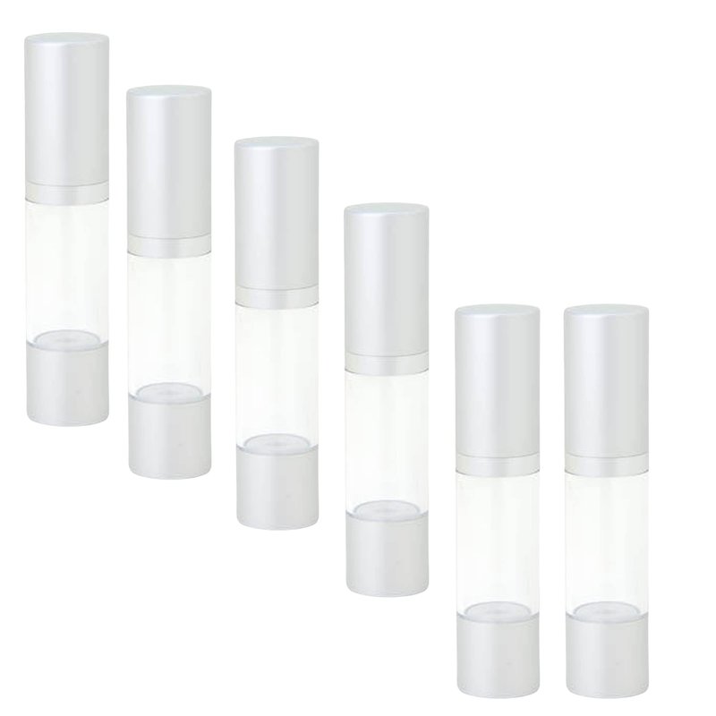 Elevate your skincare routine with our Silver Airless Treatment Pump Bottles, perfect for preserving homemade serums, lotions, and creams. Each 0.5 oz bottle, available individually or in sets of six, ensures your products stay fresh and potent. Our advanced airless pump bottles protect your organic skincare from oxidation, dilution, and contamination, extending shelf life by preventing bacteria, yeast, and mold growth. These versatile clear travel bottles are ideal for both thick creams and light serums, ensuring smooth dispensing every time. Featuring a sleek design with a matte silver cap, silver base, white pump, and transparent body, these bottles add a professional touch. They’re TSA-approved, making them perfect travel cosmetic containers for your skincare essentials. Whether you're storing your creations at home or on the go, these pump bottles are a must-have for any skincare enthusiast. Order your set today and enjoy the benefits of premium airless pump bottles travel!