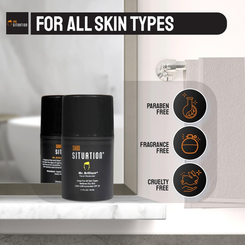 - Mr. BRILLIANT FACIAL MOISTURIZER - This is fragrance-free and ideal for all skin types, including sensitive and dry. It relieves dryness while nourishing your skin and helps fight the signs of aging by reducing the appearance of lines and rough textures, leaving your skin looking refreshed.