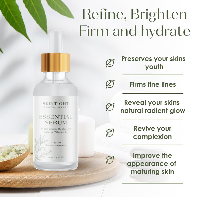 Skin Tight Essential Serum - Anti Aging Face and Eye Serum with Niacinamide, Hyaluronic Acid, Vitamin E, Avocado Oil - Glowing Cream for Dark Spots, Even Skin Tone, Fine Lines and Wrinkles, 1 FL. OZ.