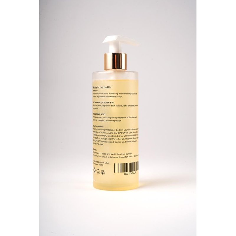 Skincare essential that combines the power of vitamin C, niacinamide, and hyaluronic acid to rejuvenate your daily cleansing routine. Vitamin C brightens your complexion, reducing dullness and dark spots while providing protection from environmental stressors. Niacinamide refines skin texture, minimizes pores, and evens skin tone. Hyaluronic acid ensures deep hydration, keeping your skin supple and moisturized all day. Suitable for all skin types, our gentle formula revitalizes and leaves your skin refreshed. Elevate your skincare routine with this cleanser and say hello to a luminous complexion.