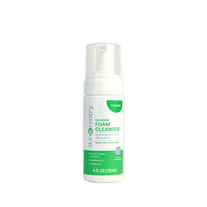 SKINCENTRY No-Rinse Foam Cleanser, Hospital Grade Total Hair Shampoo & Body Wash, Waterless Cleanser, Hypoallergenic, Dry Skin, Paraben, Sulfate, and Dye Free (4 oz.)