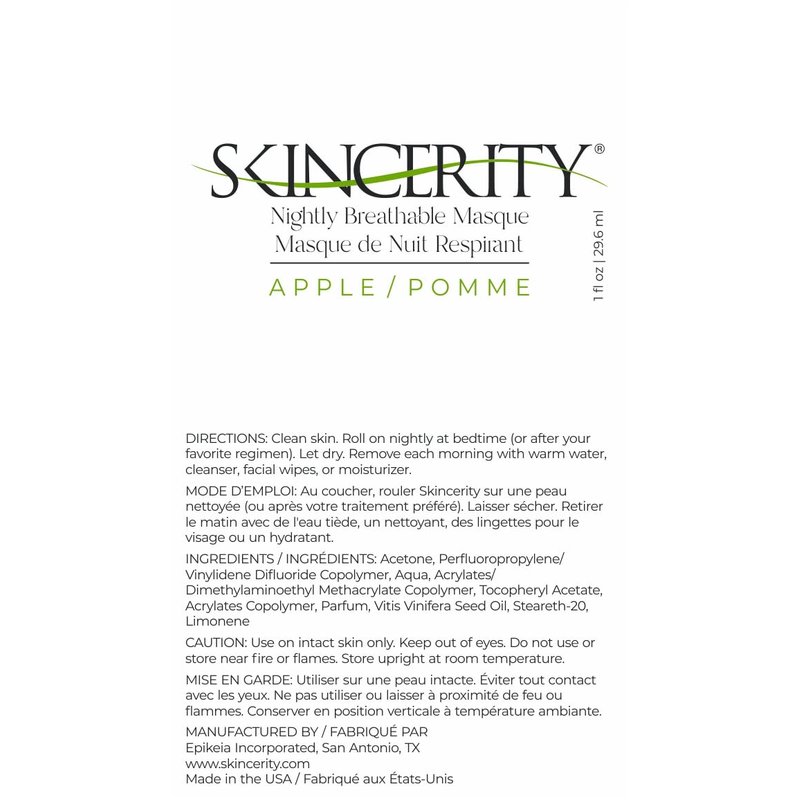 Skincerity Nightly Breathable Masque - Apple, Grapeseed Oil and Vitamin E, Anti-Aging, Reduce Pore Size and Wrinkles, Hydrating and Nourishing, Radiant and Brightened Complexion
