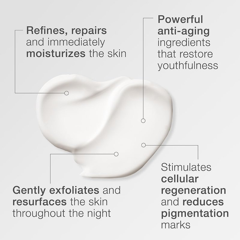 This youth-boosting overnight cream refines, repairs and immediately moisturizes the skin. The nourishing soft, gel-cream texture is enriched with powerful anti-aging ingredients that restore youthfulness to normal, dry and mature skin. Formulated with a Rejuvenating Tripeptide and a Cell Renewing Complex to gently exfoliate and resurface the skin throughout the night when cellular repair is optimized. The refining actives work in perfect synergy with the anti-aging Active Cellular Regenerating Complex (ACR) to stimulate cellular regeneration and mimic the cell renewal process of more youthful skin. As a result, signs of wrinkles are diminished, pigmentation marks are reduced and a smoother, more radiant complexion is revealed.