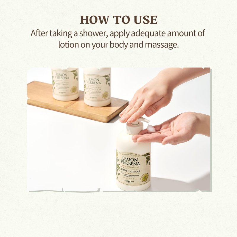 SKINFOOD Lemon Verbena Body Lotion 450g - Hydrates and Smoothes Dry Skin - Verbena Extract, Leaves Skin Freshly Moisturized - Contains a Brisk Citrus Scent of Lemon Verbena Extract - Body Lotion for Men & Women (15.2 fl.oz.)