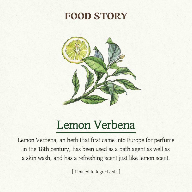 It contains the extract of the fresh citrus-scented herb lemon verbena, giving it a moist and cool moisture.